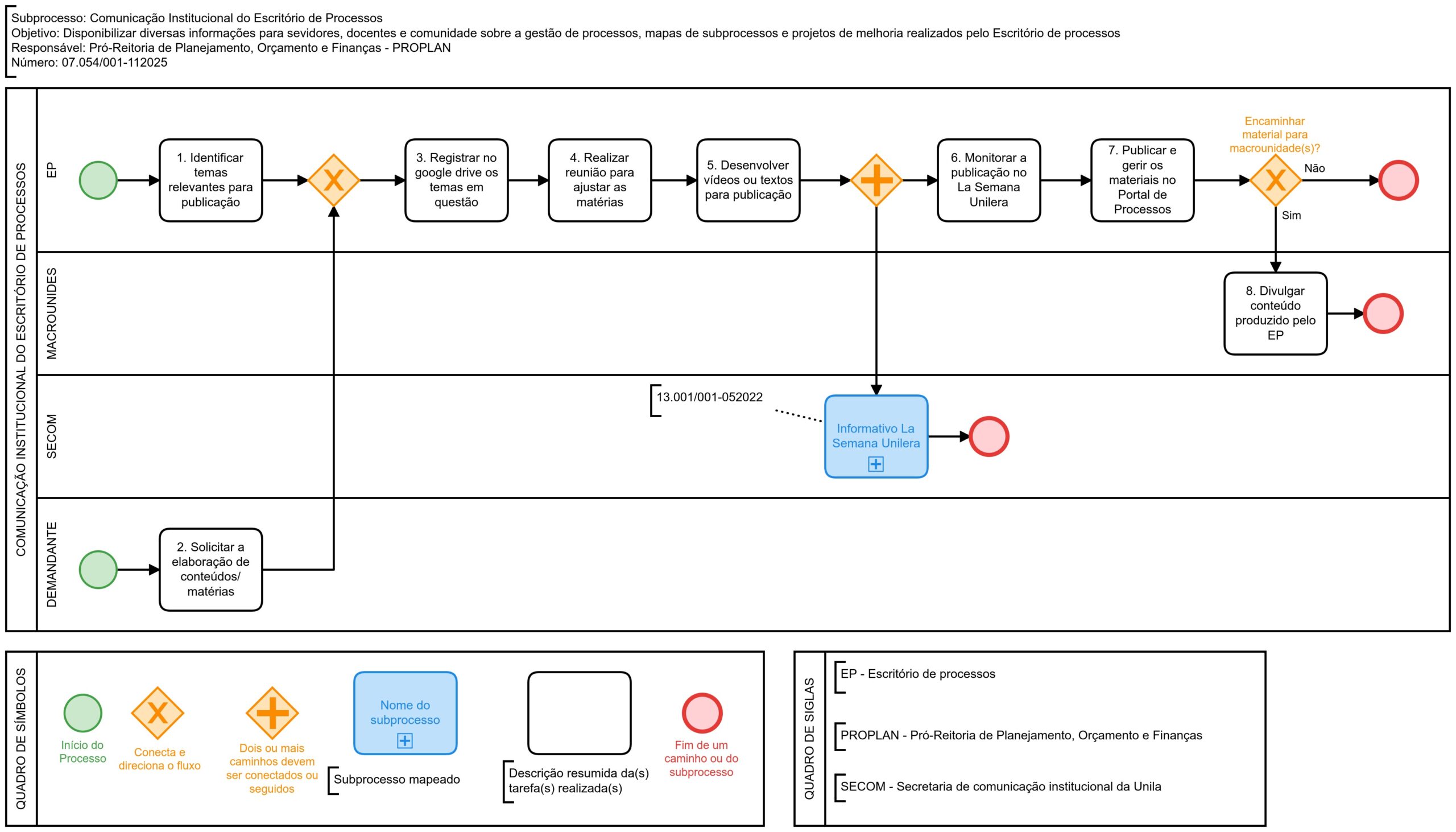 Objetivo: Disponibilizar diversas informações para sevidores, docentes e comunidade sobre a gestão de processos, mapas de subprocessos e projetos de melhoria realizados pelo Escritório de processos