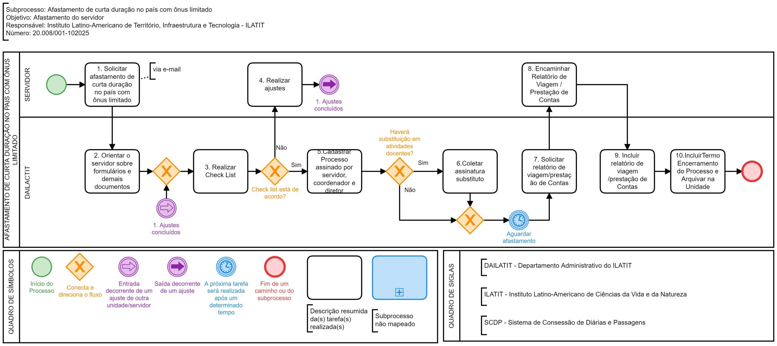 | Gestor do Subprocesso | Diretor(a) do Instituto Latino-americano de Tecnologia, Infraestrutura e Território - ILATIT |