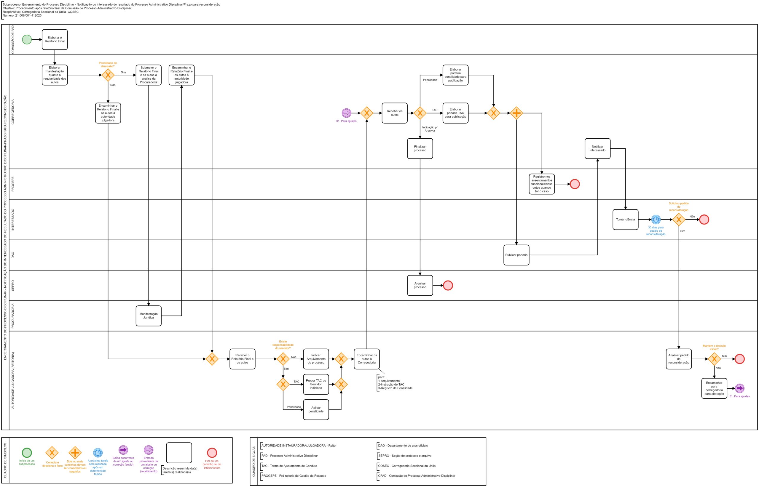 | Gestor do Subprocesso | Corregedor(a) da Corregedoria Seccional da Unila |