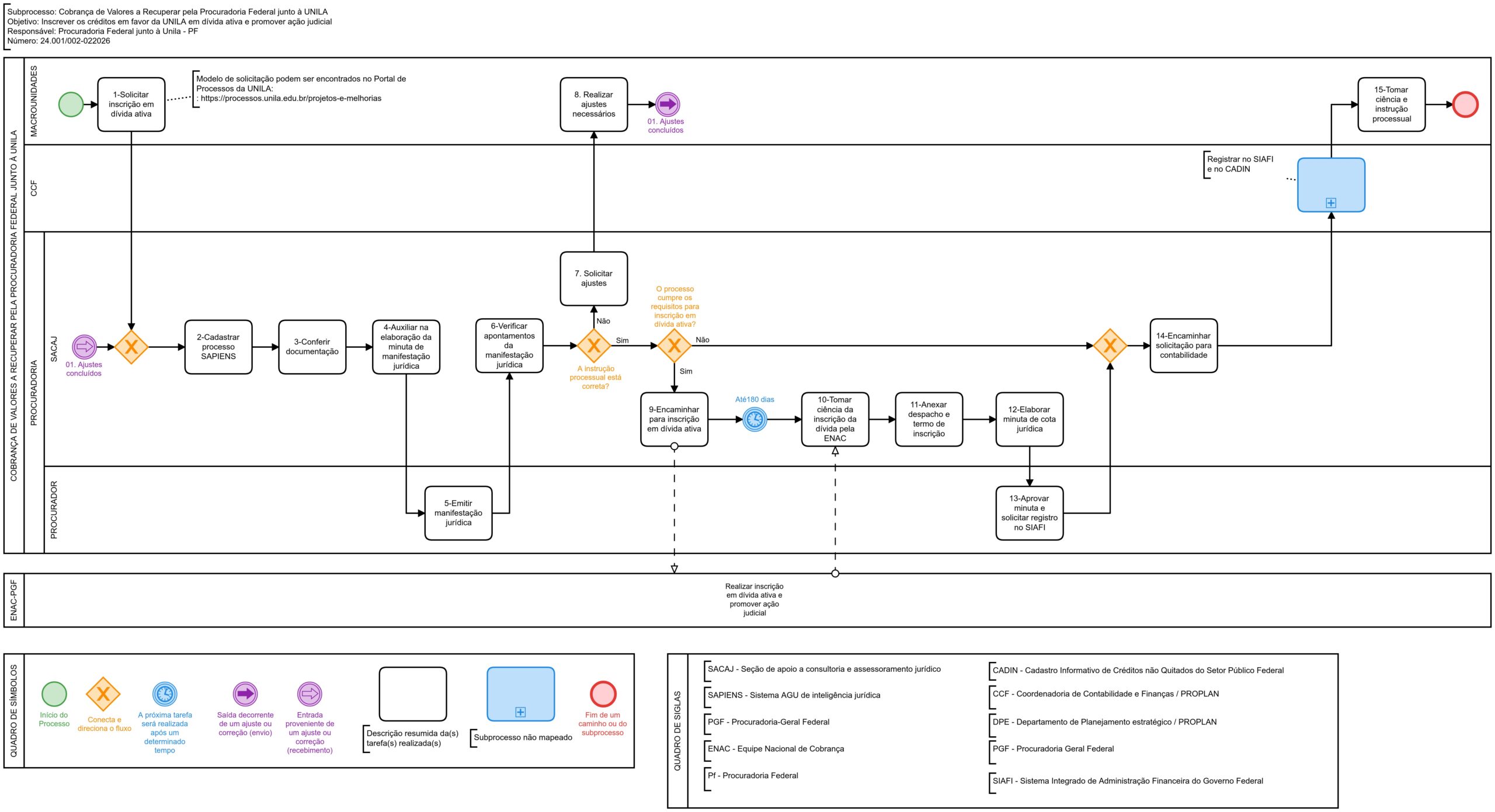 | Gestor do Subprocesso | Procurador Federal junto à Unila |